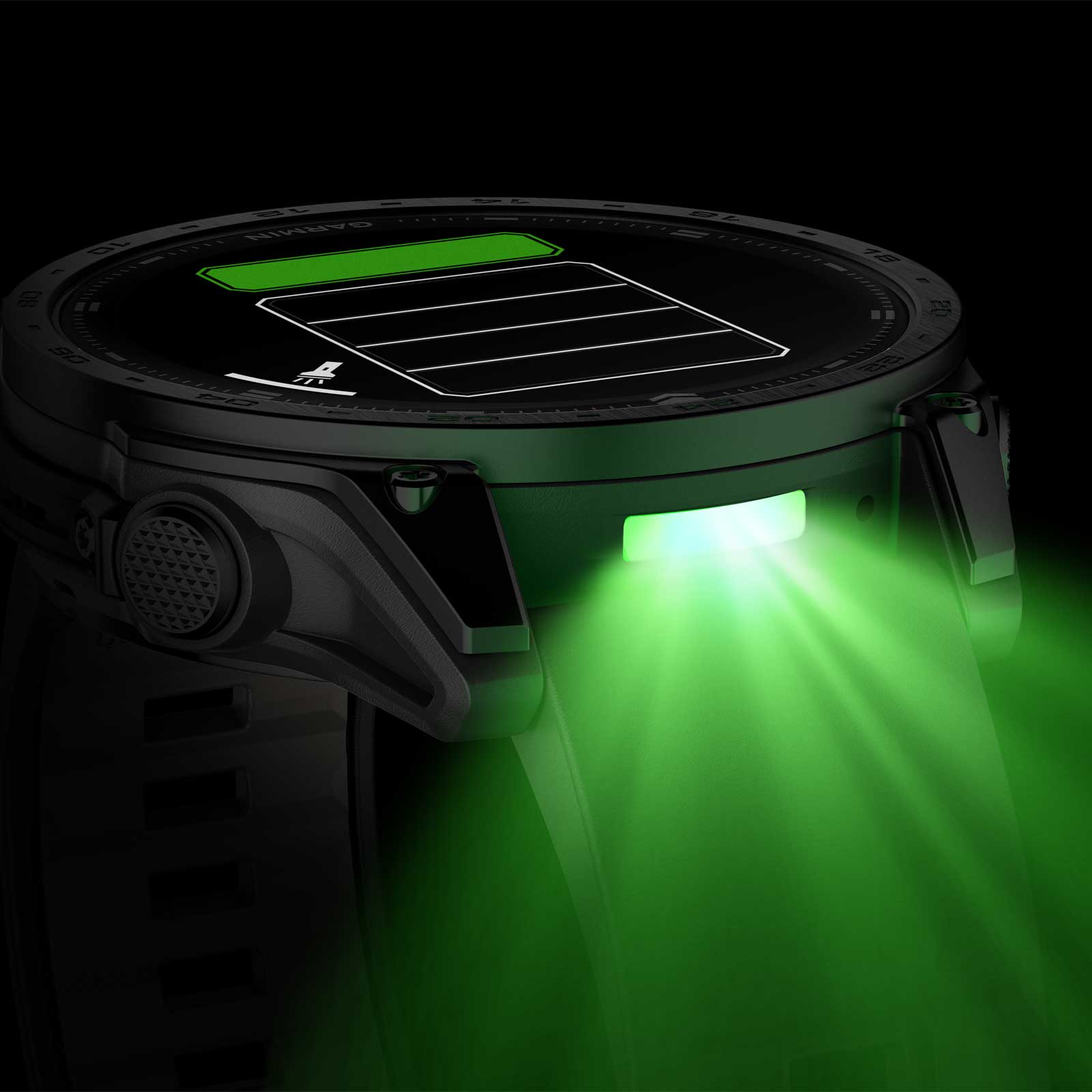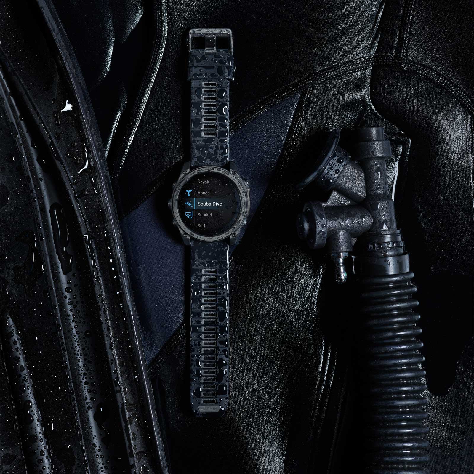 Hebe dich ab – mit der tactix 8. Die taktische Multisport-Smartwatch mit brillanten AMOLED Touchdisplay, Titanium-Lünette, Saphirglas und einer Tauchtauglichkeit von 40 Metern begleitet dich bei allen Missionen.